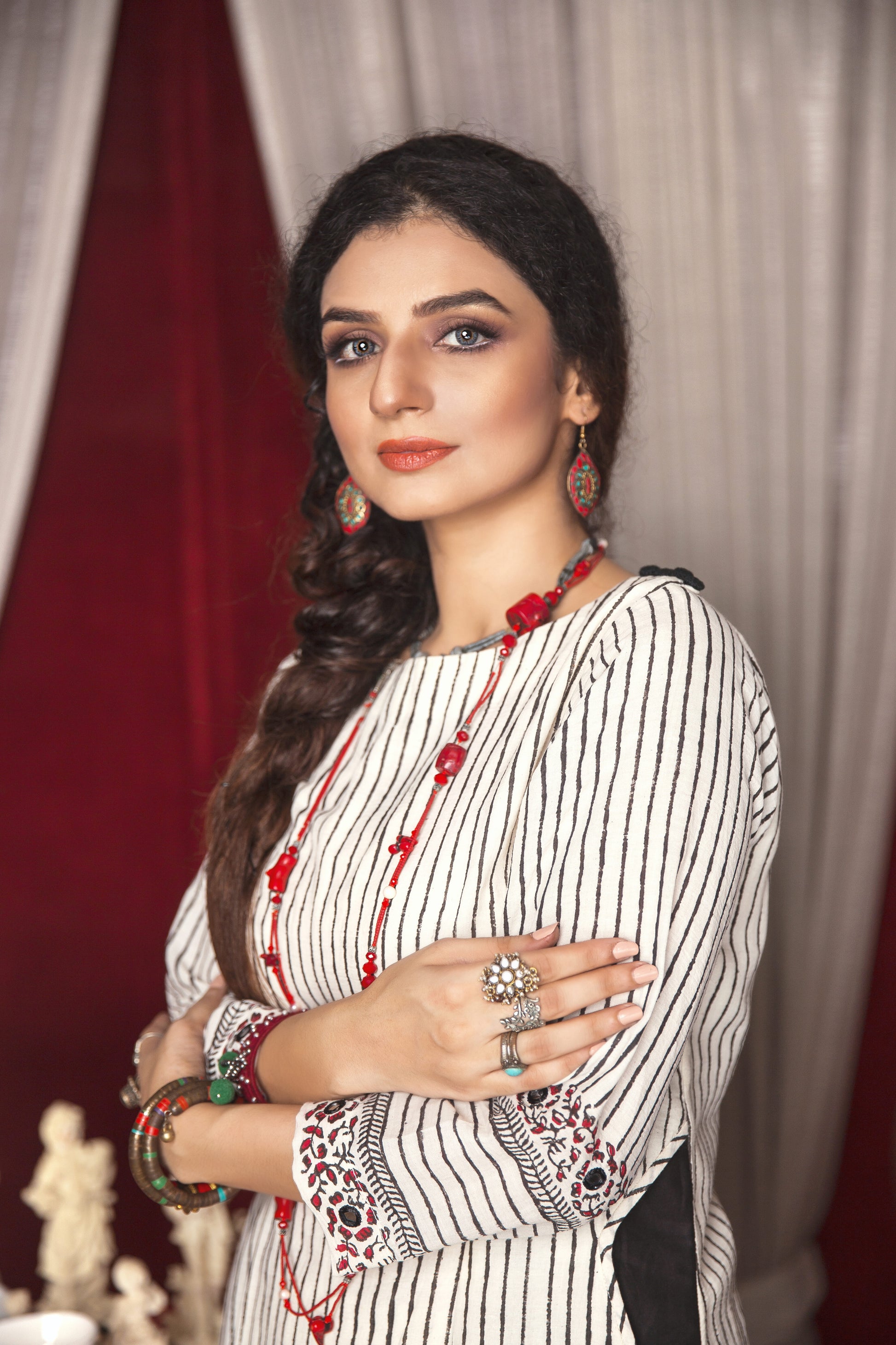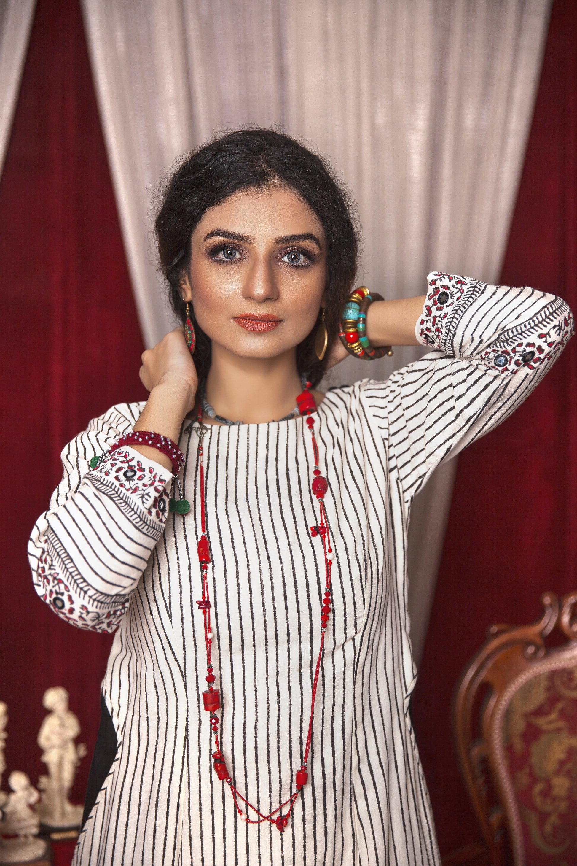 Create a remark while wearing this stunning outfit! Our block-print soft cotton shirt features intricate design work and mirror embellishments that add a touch of elegance and charm to any outfit. Paired with comfortable cotton pants, Aarzoo is perfect for a stylish and comfortable look.