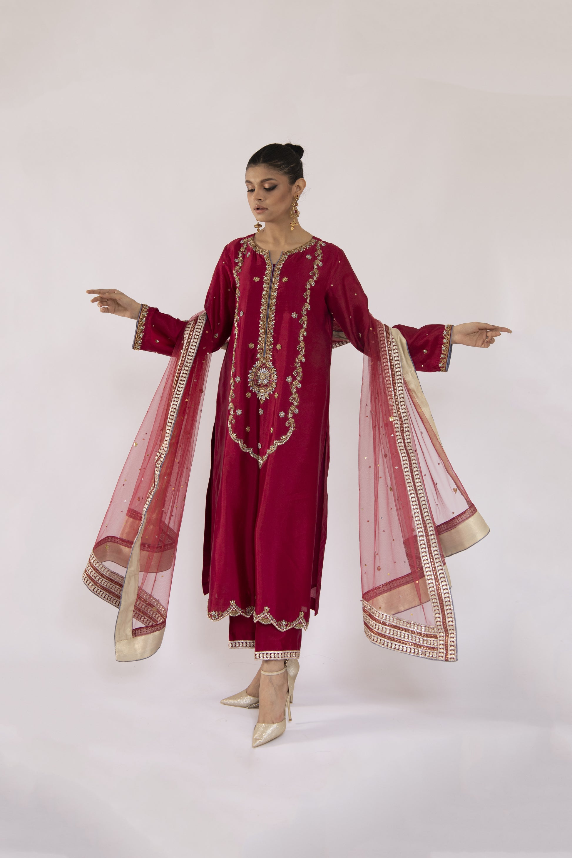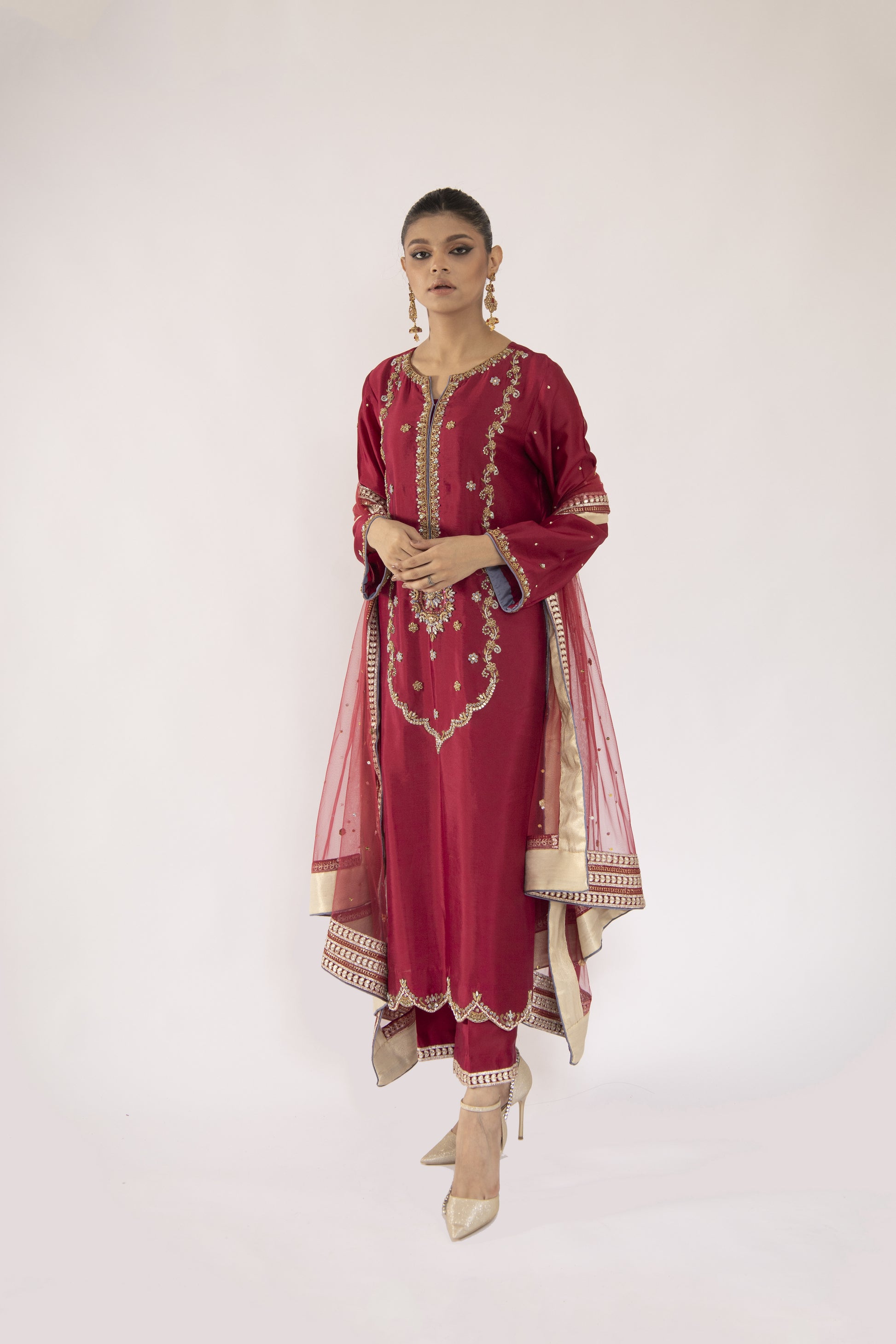 Taking care of your clothes keeps them pristine for a long time. This garment has been carefully hand crafted using the finest quality fabrics sourced from Pakistan. Do not tumble dry. Do not use bleach. To maintain quality of the fabric, kindly dry clean.