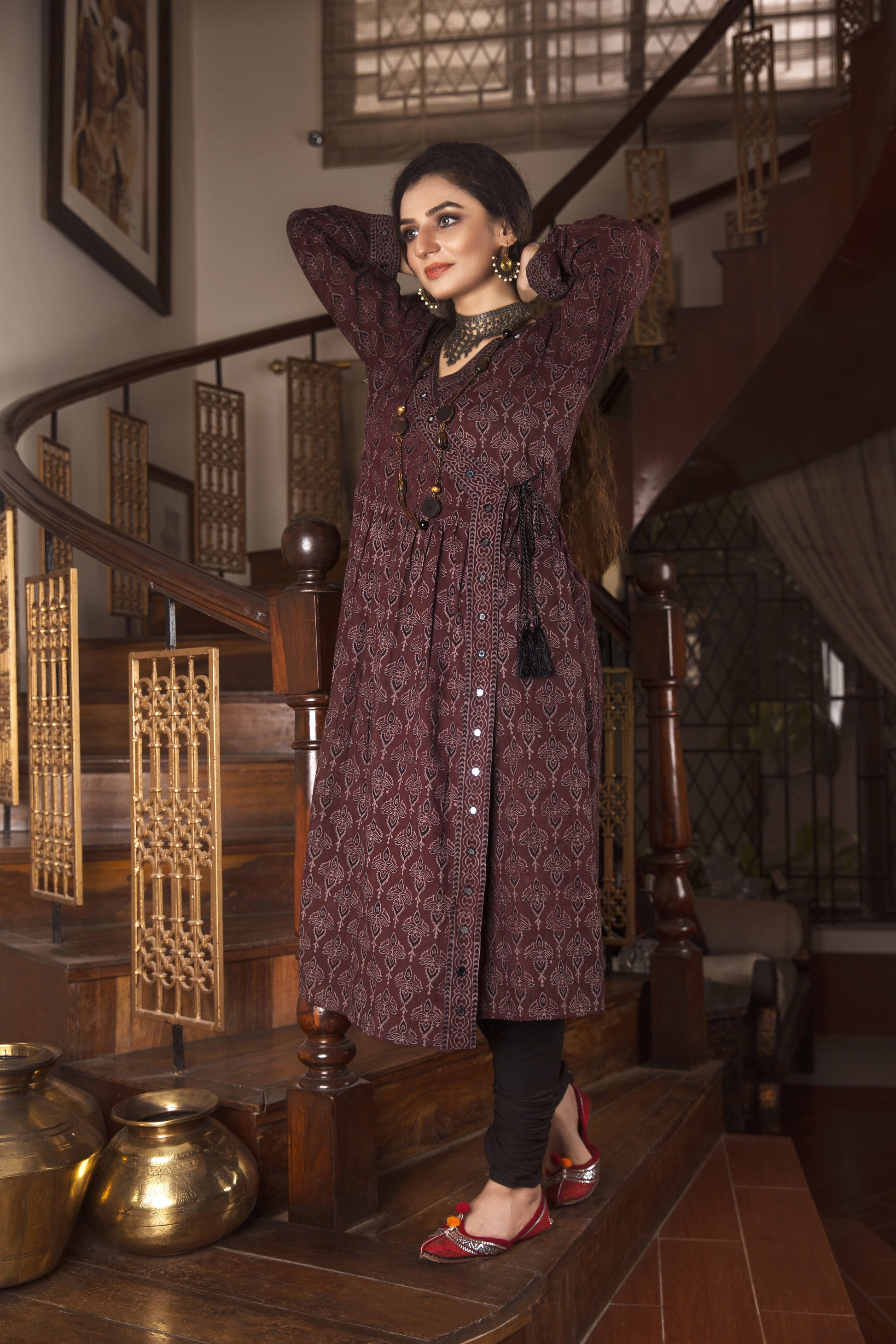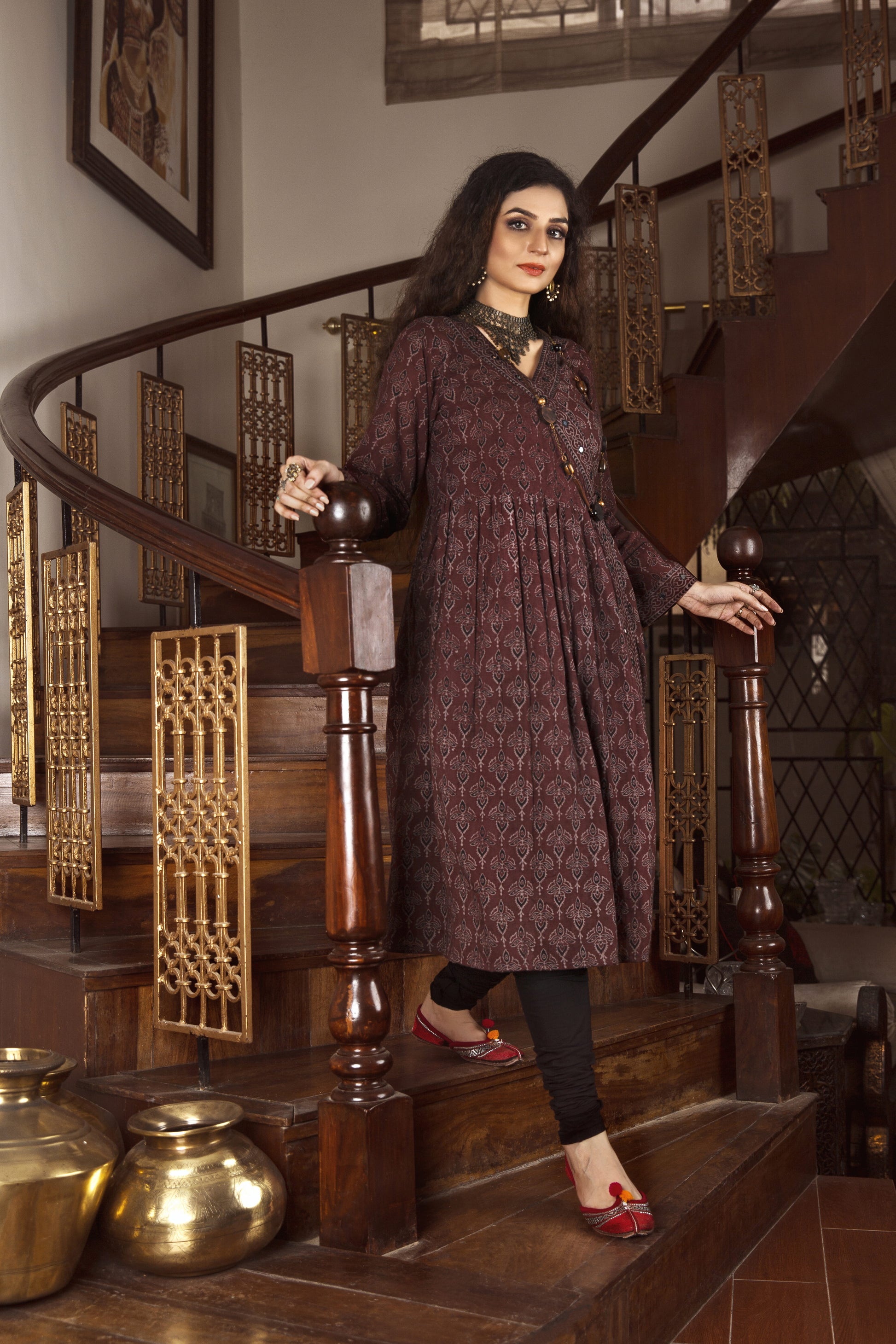 Nafs is a traditional Indo-Pak garment that is perfect for those who want to add a touch of cultural diversity to their wardrobe. The blockprinting technique used in this Angharkha is a traditional method of printing that has been used in Indo-Pak for centuries.