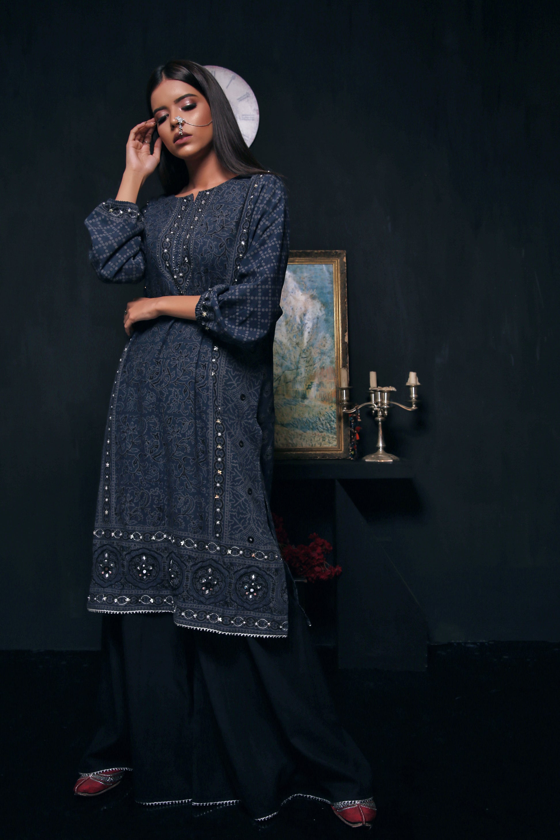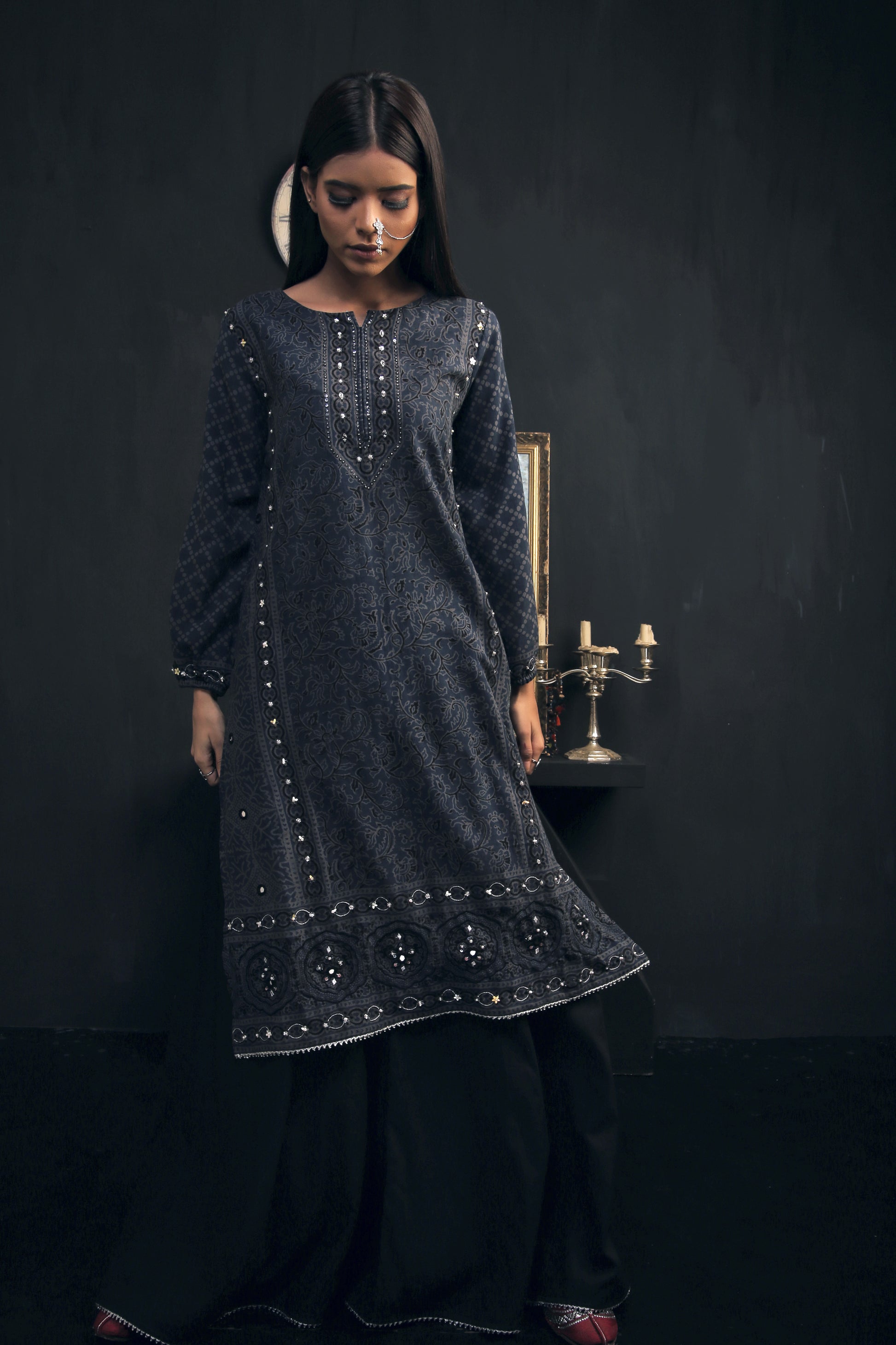 This charcoal grey shirt is a stunning piece of clothing that features intricate handwork, sequins, and diamonte along gota trims, making it a perfect blend of traditional and modern design. The natural dyes used in this shirt are eco-friendly, making it an excellent choice for those who want to reduce their environmental impact.