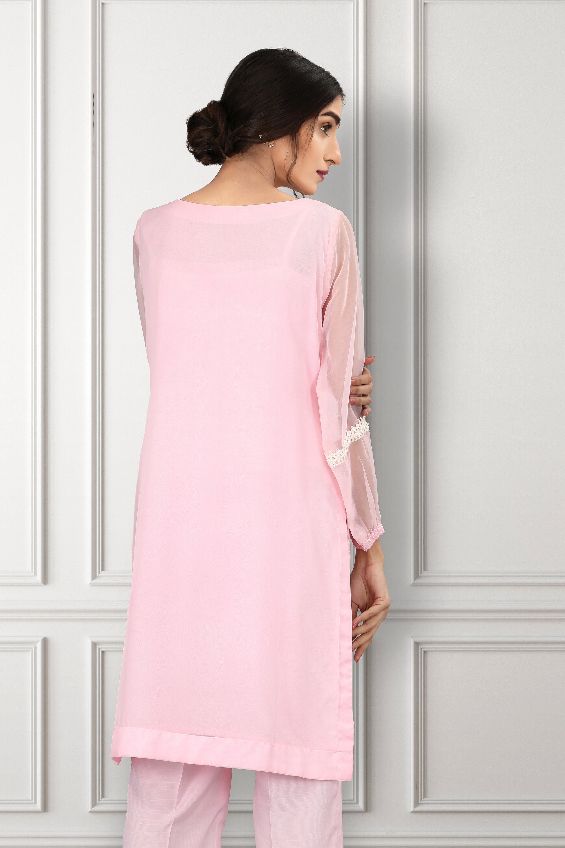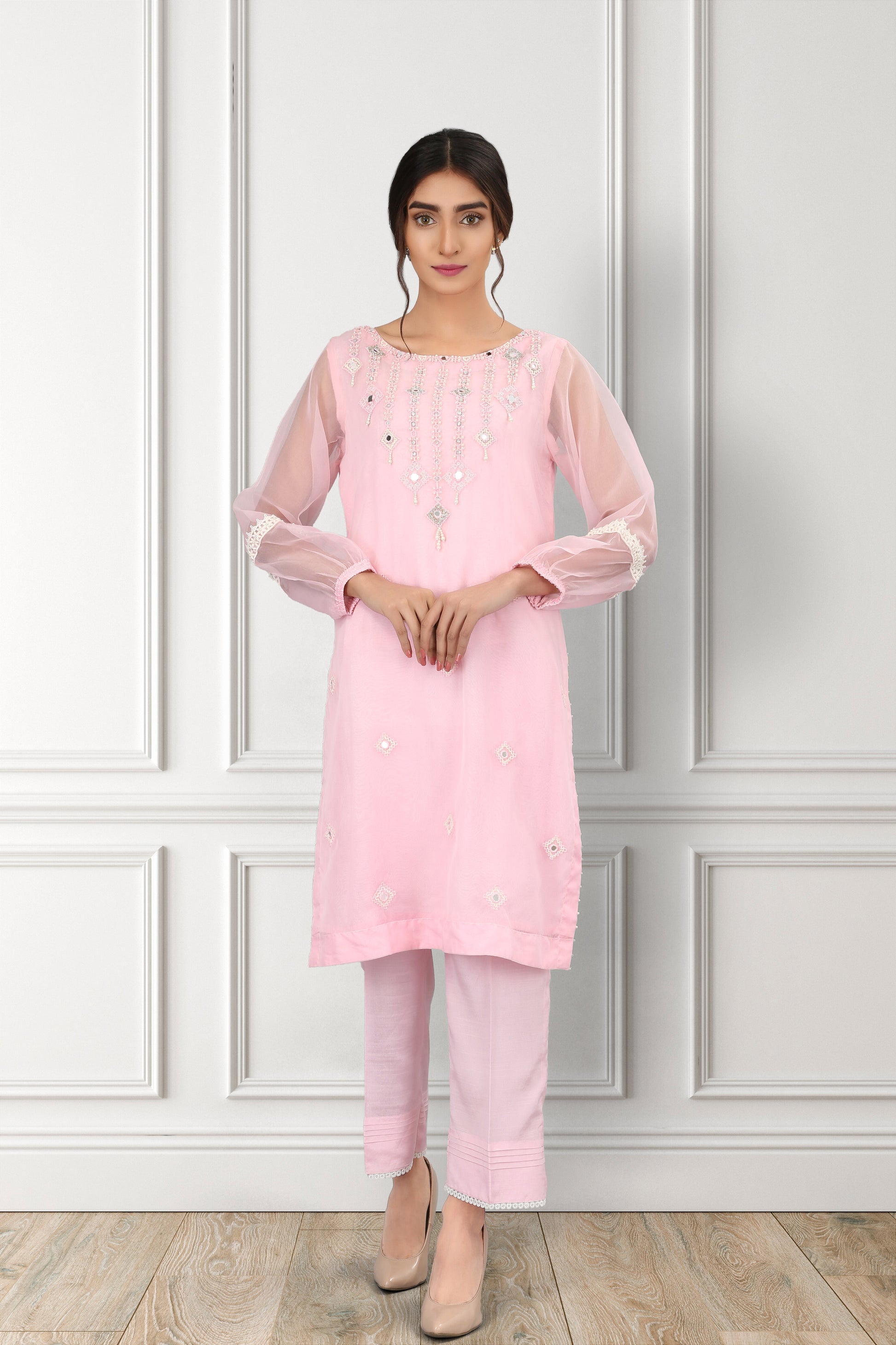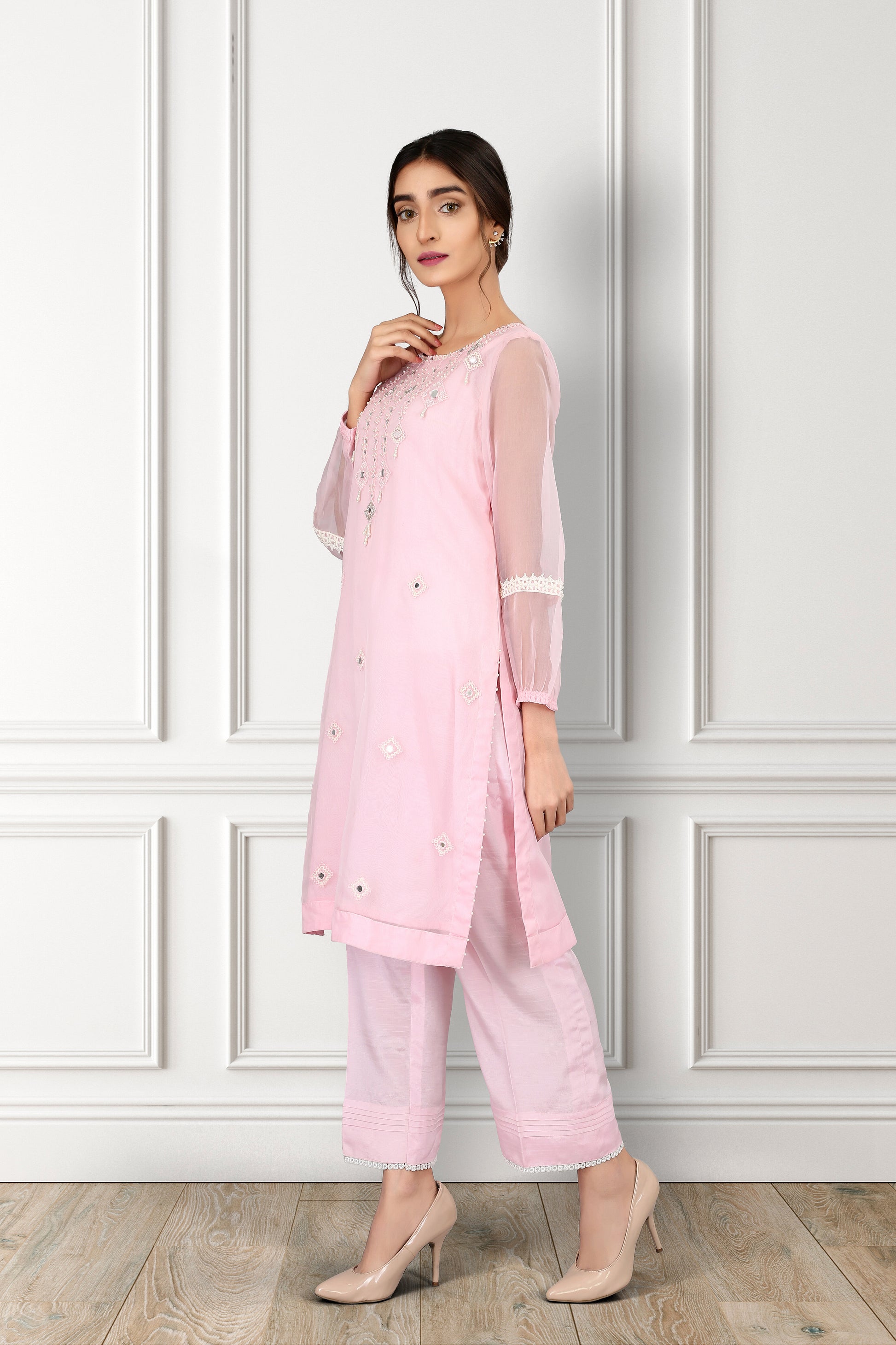 A delicate hand work embroidery in mirror and pearls that adds a touch of elegance to any occasion. The shirt is fully lined, providing comfort and convenience, while the stunning embroidery work creates a mesmerizing look that is sure to turn heads. Paired with comfortable pants, this outfit is perfect for any event or occasion.