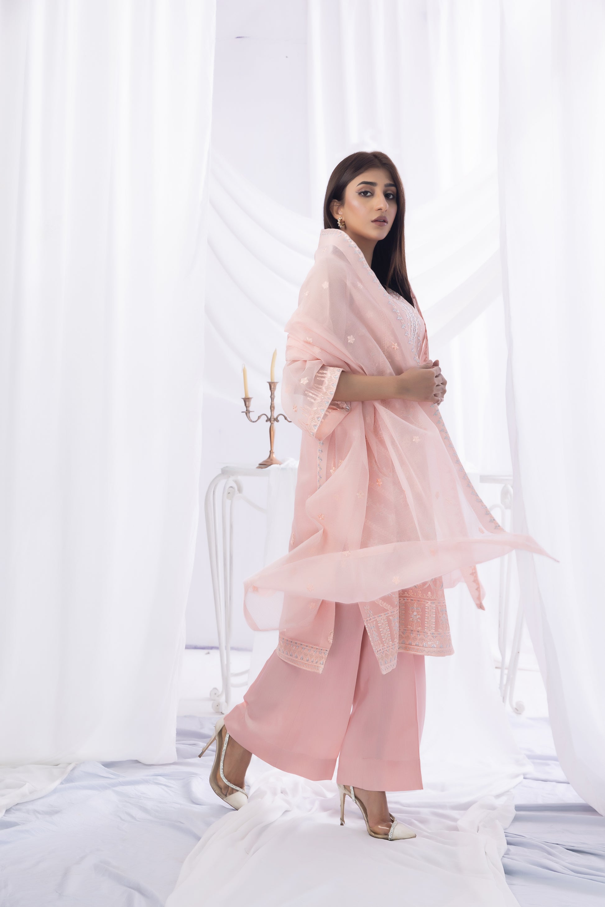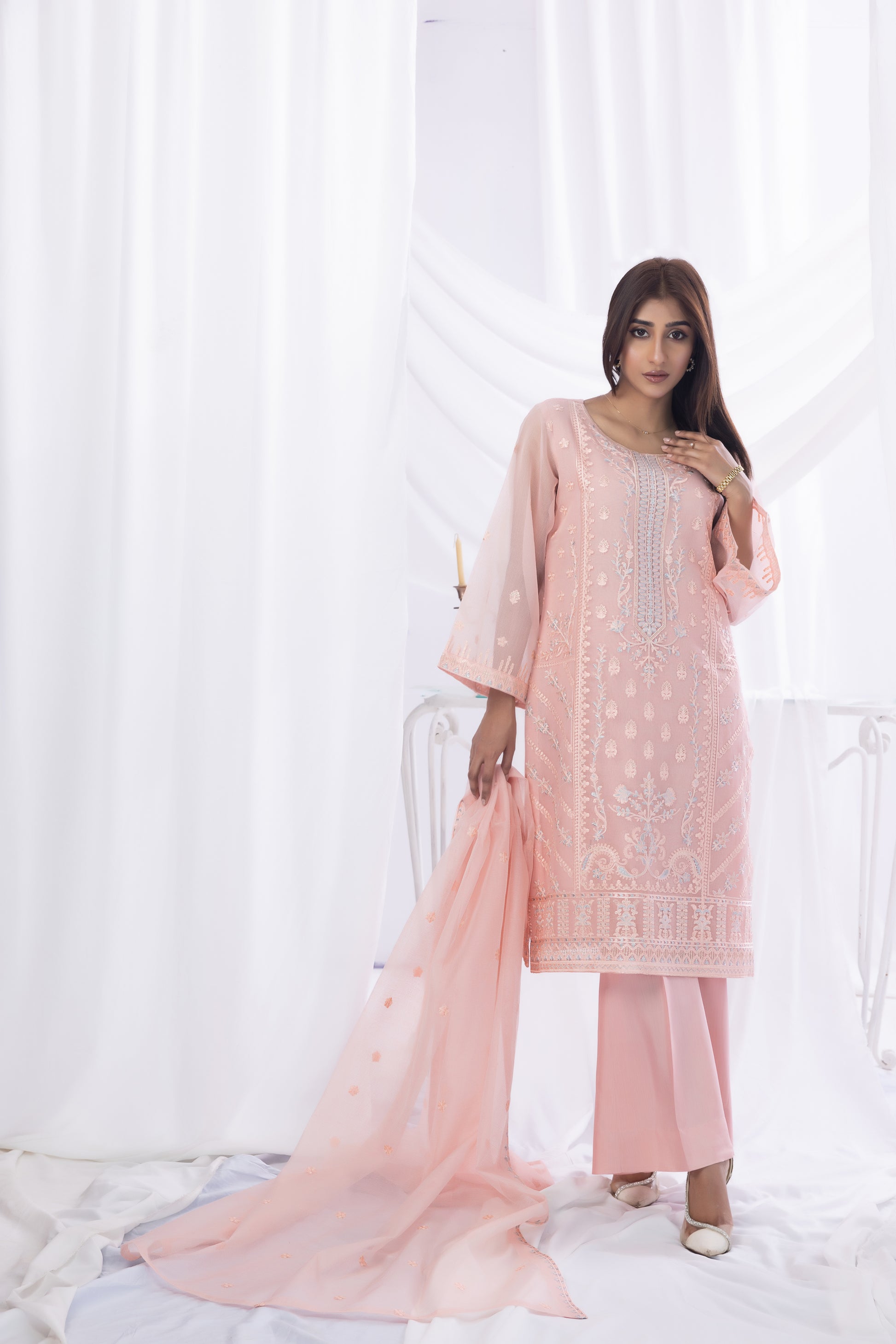 Fabric: Khaddi Net Shirt & Dupatta with Silk Pants
