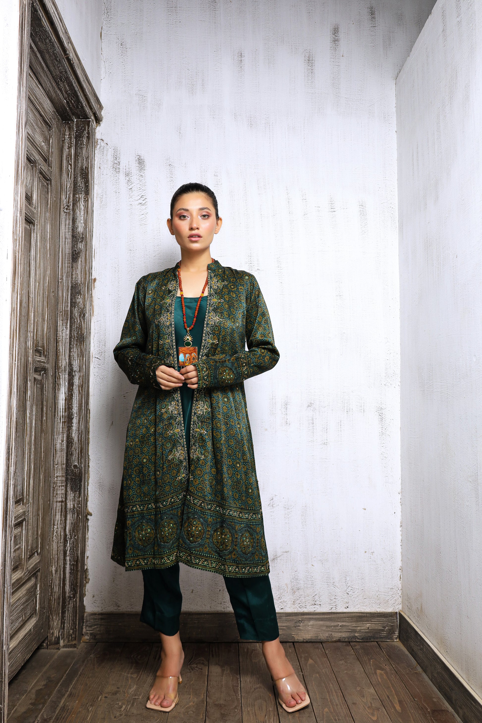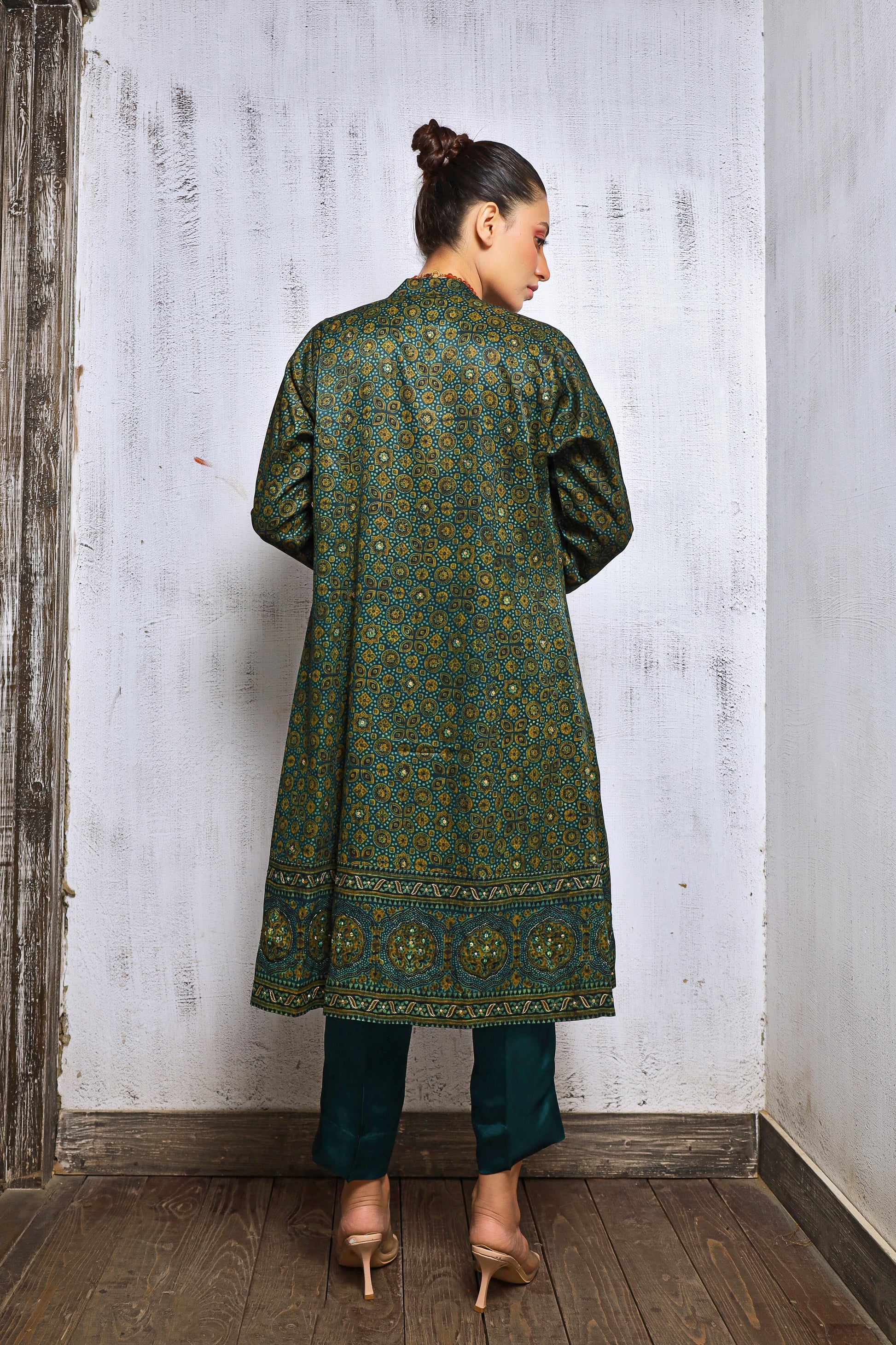 The soft and breathable silk fabric will make you feel comfortable and chic all night long, while the natural dyes used in the printing process are environmentally friendly. Don't sacrifice style for sustainability - choose our natural dyed blockprinted Charmeuse silk jacket and make a statement while supporting eco-friendly fashion.