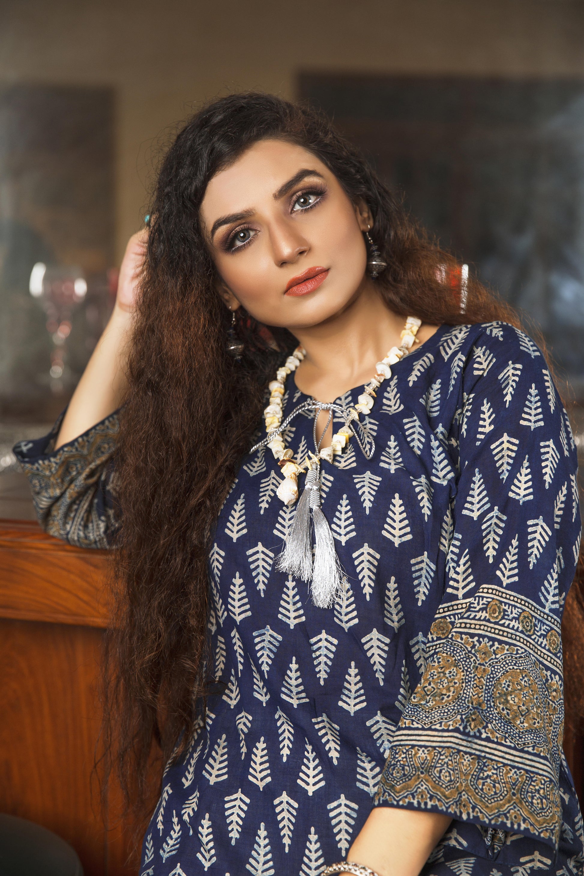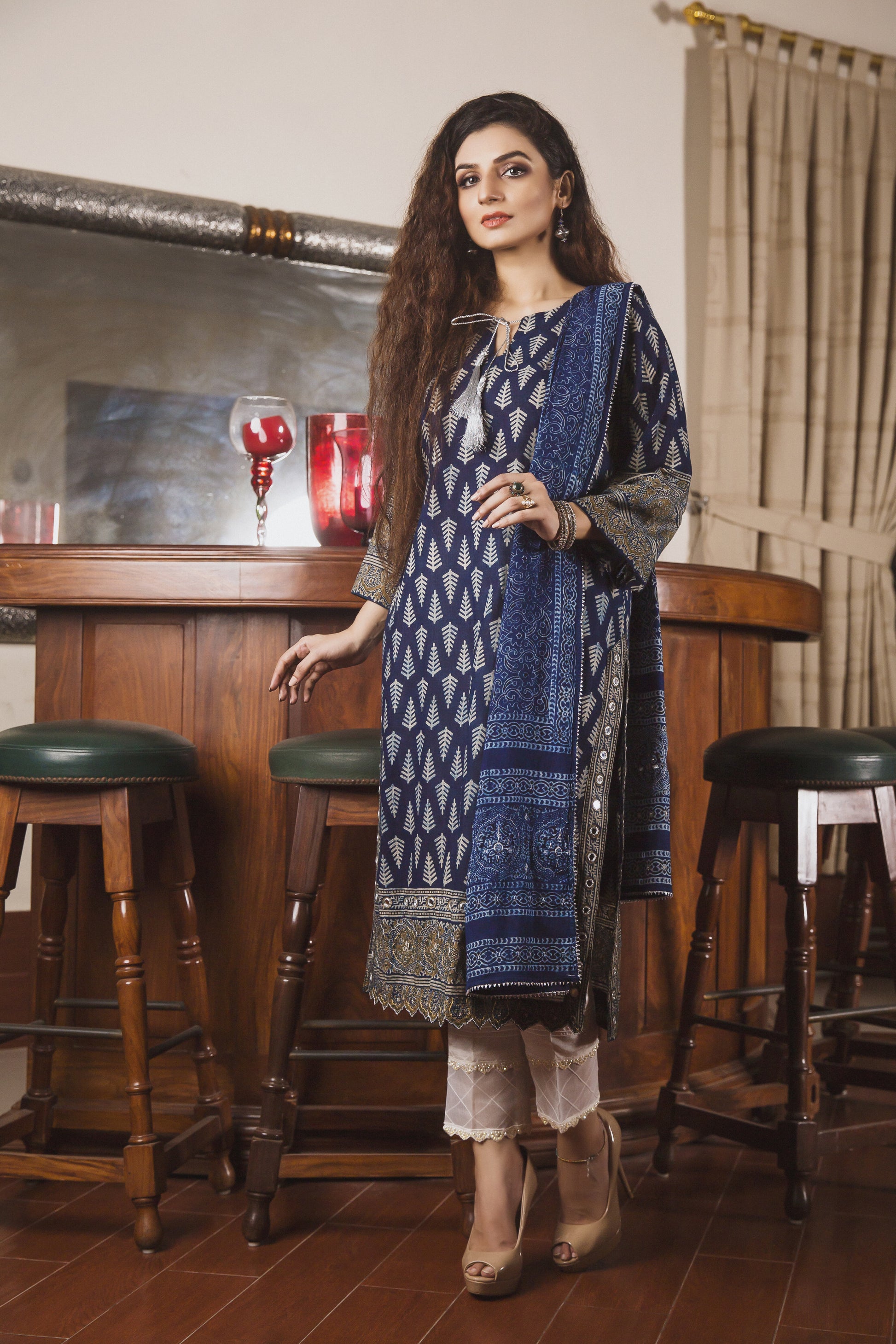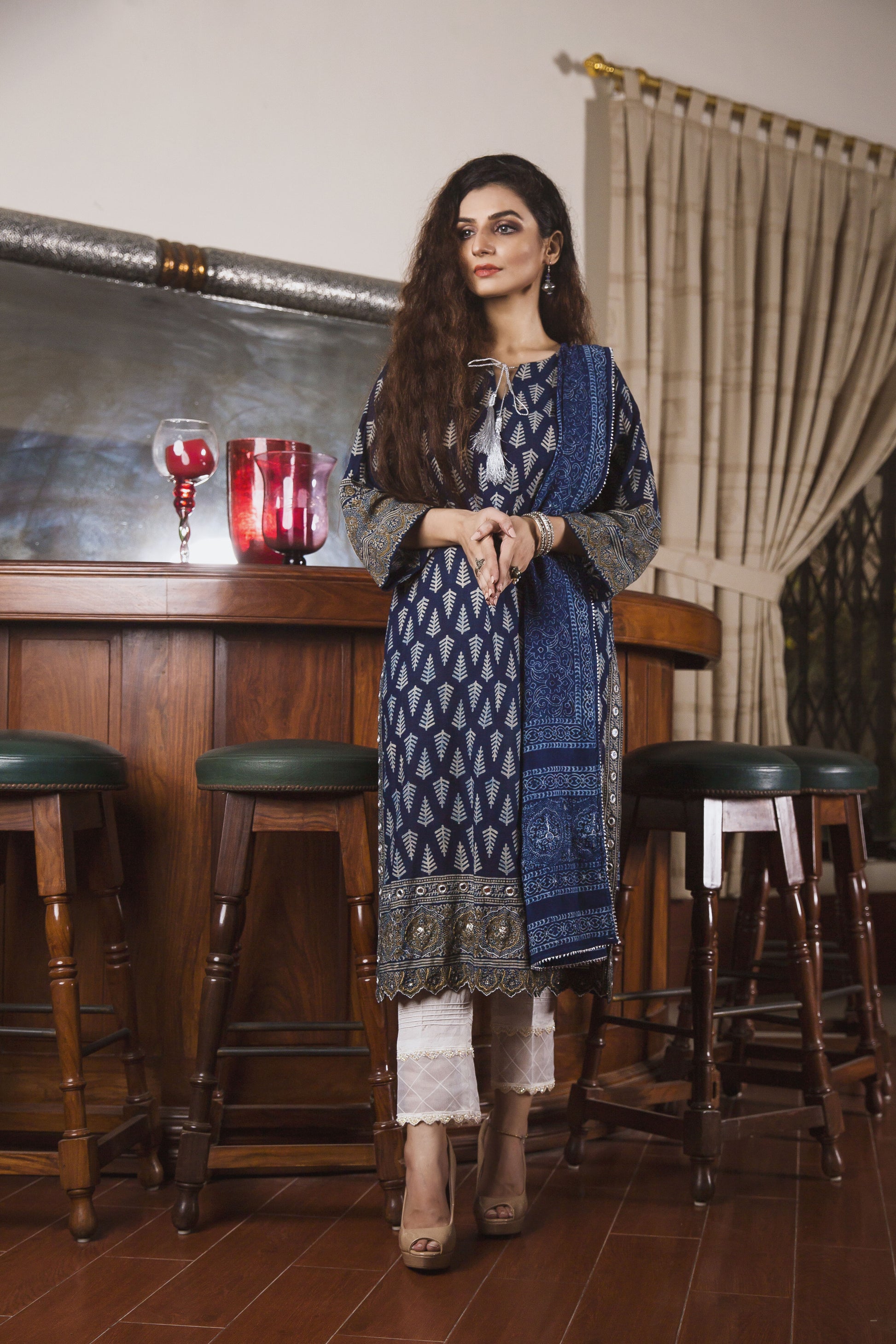 The soft and breathable cotton fabric will keep you comfortable all day long, while the natural dyes used in the printing process are environmentally friendly. Make a statement while supporting eco-friendly fashion with our natural dyed blockprinted cotton shirt, matching stole, and comfortable cotton pants.